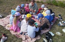 А в завершении дня воздуха и ветра все вместе выдували мыльные пузыри. -