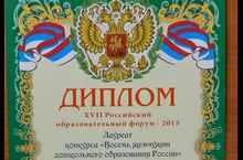 МБОУ Прогимнгазия "Сказка" НМР РТ награждена дипломом ХVII Российского образовательного форума - 2013