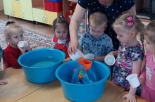 Младшая дежурная группа любит экспериментировать.