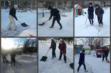 Даже в выходной педагоги нашего ДОУ приходили чистить снег на участках, а помогали им родители воспитанников.....