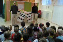 Театральную постановку "Три медведя" на новый лад сегодня представила нашим воспитанникам "Веселая команда". Ребята с интересом наблюдали за происходящим на сцене, и поблагодарили артистов апплодисментами.
