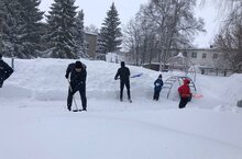С последствиями метелей и снегопадов в нашем саду борьбу ведет "снежный десант".
