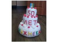 Старший воспитатель прогимназии "Сказка" ,Тузова Людмила Николаевна со своей дочерью Ангелиной, приняли участие в конкурсном движении в честь юбилея города Нижнекамска. Торт выполнен в технике "Вязание крючком".