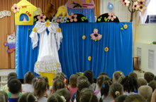 И вновь театр в гостях у ребят! Очень нравится ребятам встречаться с волшебным миром театра.
