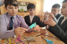 Ребята из объединения "Друзья природы" (педагог Фаттахова Л.З.) мастерили новогодние украшения из бросового материала - картона и макулатуры. -