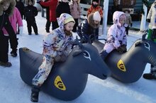Уже стало традицией, что наши воспитанники посещают елочные городки, а педагоги (Набиуллина Ф. В., Башкирова О. А., Куртаева Н. А., Абдрахманова Г. М.) организуют для детей интерактивную площадку с зимними забавами: игры на силу и ловкость с перетягиниваем каната.