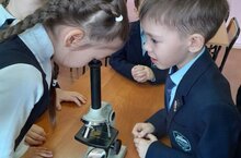 Учитель биологии Брылева А.Л. и ученики 5б класса МБОУ "СОШ №8" пригласили воспитанников объединения "Друзья природы" (педагог Нурмухаметова Э.В.) на увлекательное занятие "Мир под микроскопом".