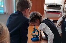Мальчишки и девчонки соревновались в скорости и точности ответов, демонстрируя эрудицию и умение работать с микроскопом. Атмосфера была наполнена азартом и дружеским соперничеством.