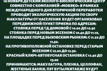 В рамках Международного Дня вторичной переработки 16 ноября Детский эколого - биологический центр совместно с компанией "Мобэко" проводит экологическую акцию по сбору макулатуры. Будет работать передвижной пункт приема вторсырья. Присоединяйтесь!