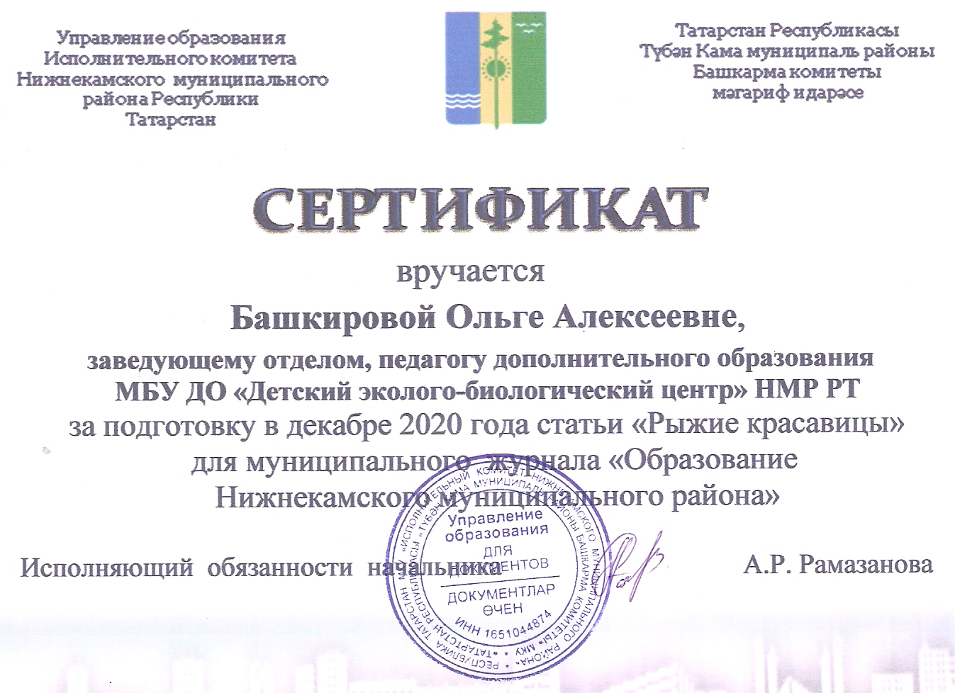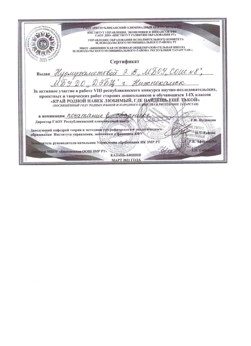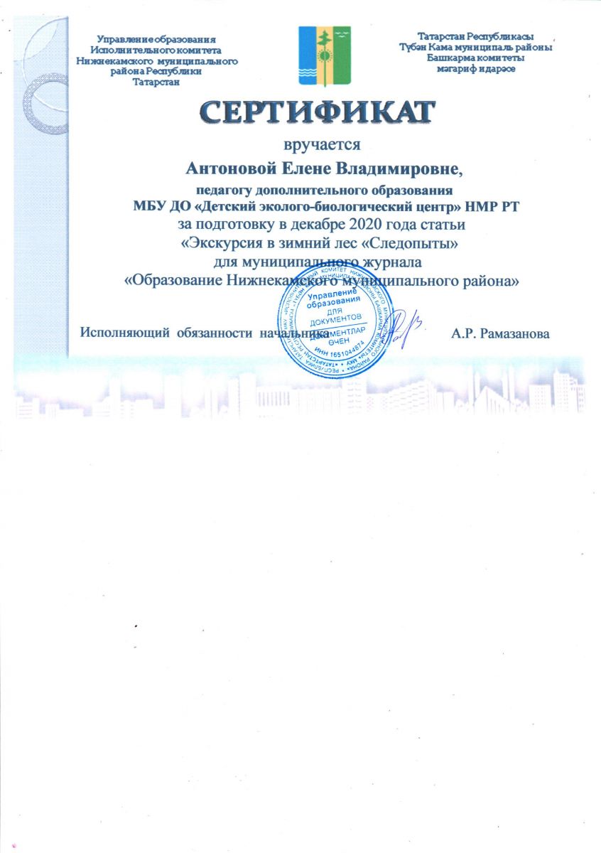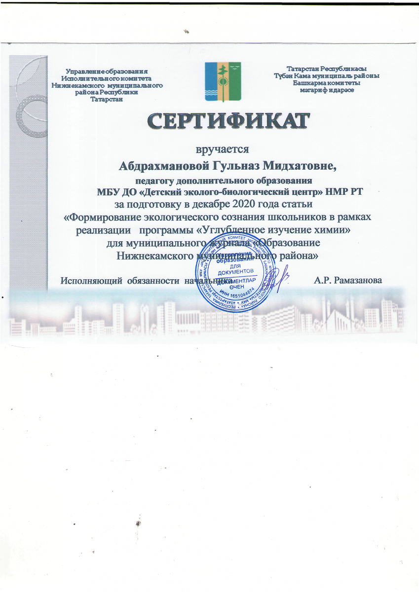 МБУ ДО «Детский эколого-биологический центр» Нижнекамского муниципального района Республики Татарстан/Татарстан Республикасы Түбән Кама муниципаль районының «Балалар экология-биология үзәге» өстәмә белем бирү муниципаль бюджет учреждениесе