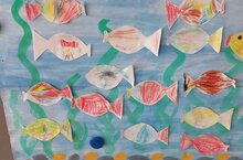 Так и в нашем группе 3 провели с детьми беседы на темы: «Кто такой рыболов», «Где ловить рыбу», отгадывали загадки, читали художественное произведение А.С. Пушкина «Сказка о рыбаке и рыбке» и рассматривали иллюстрации по теме, смотрели мультфильм "Золотая рыбка ",после просмотра провели коллективную работу "Рыбки в аквариуме ".