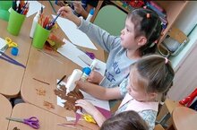 "Мы по садику гуляли и листочки собирали - 1, 2, 3, 4, 5.... листочки в группу принесём и в букетик соберём!"