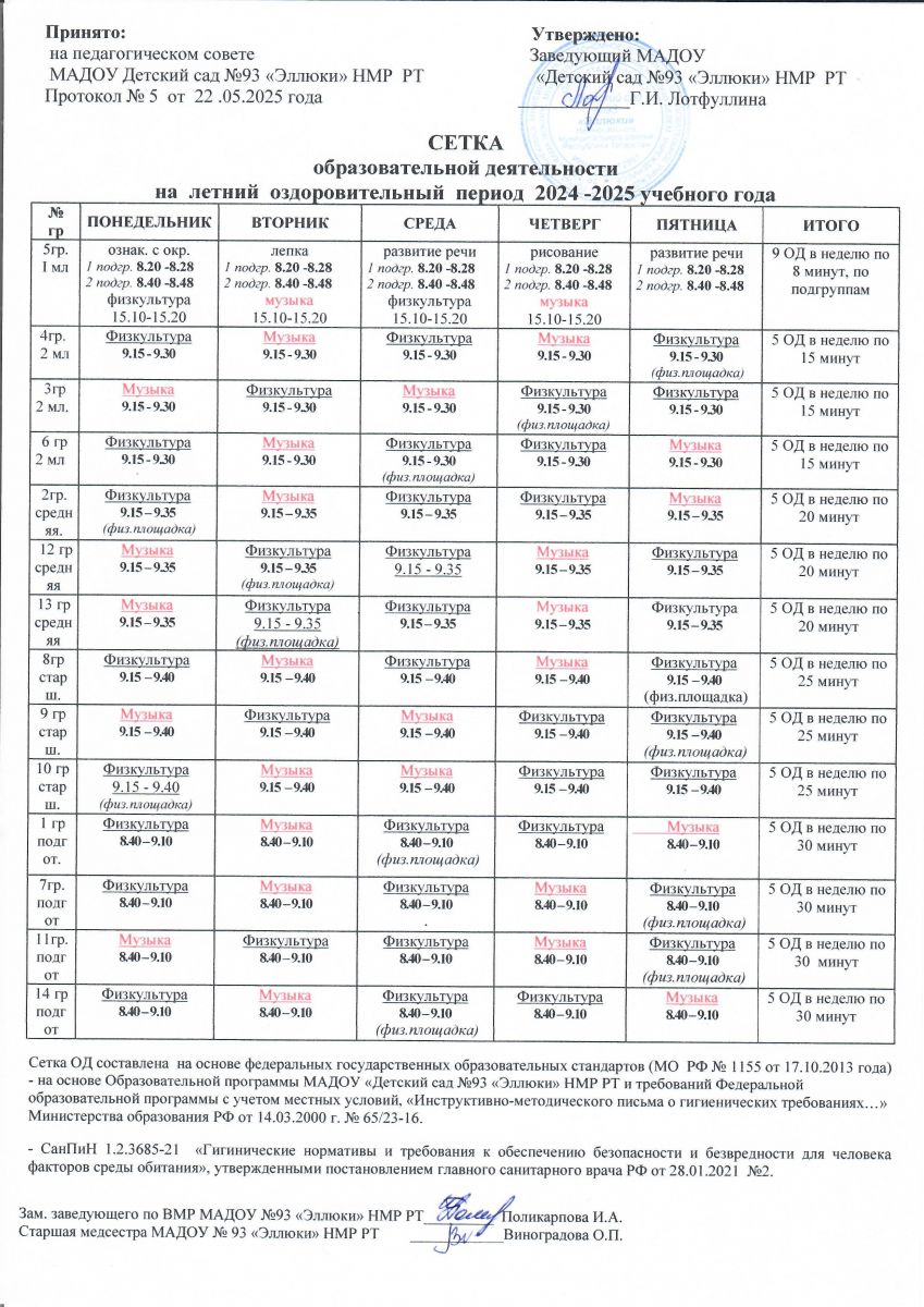 Сетка образовательной деятельности на 2024-2025 уч.год