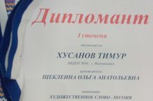 Диплом 1 степени - Хусанов Тимур в номинации "художественное слово-поэзия"