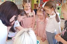 Today, kindergarten staff are holding a master class on making Frontline letters in Lemaev Square -