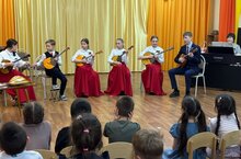 В наш детский сад пришли гости из 6 музыкальной школы.Они познакомили воспитанников с музыкальным инструментом - домра и исполнили сольно и ансамблем знакомые всем музыкальные произведения. Один из участников ансамбля был выпускник нашего сада.