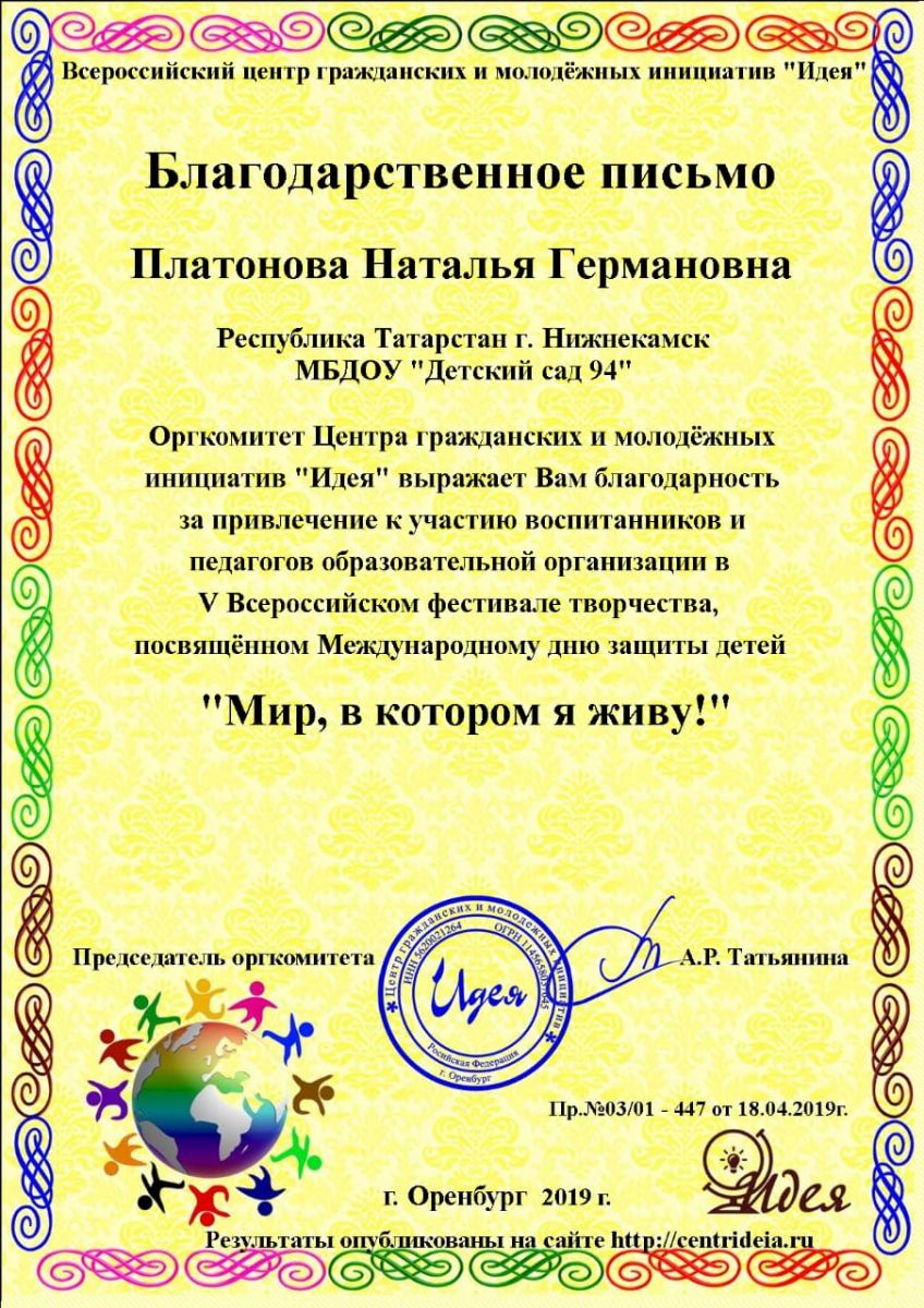 Муниципальное бюджетное дошкольное образовательное учреждение "Детский сад №94 "Соенеч" Нижнекамского муниципального района РТ/Татарстан Республикасы Түбән Кама муниципаль районы «94-нче санлы «Сөенеч балалар бакчасы» муниципаль бюджет мәктәпкәчә белем учреждениесе