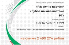 Наш Центр с проектом "Nk-Racing Team - вектор движения нового поколения" стал дважды победителем Гранта "Энергия добра" Благотворительного фонда "ТАТНЕФТЬ" 11.05.2024