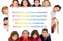 ДТ «Кванториум» приглашает детей детских садов и начальной школы на веселые, занимательные выпускные праздники 22.05.2021