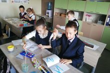 Сегодня в 4 А день прошёл насыщенно! На уроке изобразительного искусства дети рисовали в нетрадиционной технике Ниткографии.