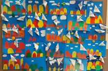 Сегодня на уроке технологии ученики 1б класса сделали аппликацию на тему "Отлёт птиц".