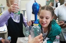 Дети очень любят смотреть опыты! А ученики 4 класса А сами провели опыт, надув воздушный шар с помощью соды и уксуса.