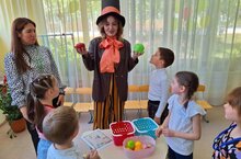 А в детском саду#38 прошла традиционная квест – игра на знание английского языка среди воспитанников дошкольных образовательных учреждений. 28 участников, разделившись на 6 команд, выполняли задания на 6 станциях: называли на английском языке части тела, фрукты и овощи, цвета и одежду, цифры, классифицировали предметы. У каждой команды была своя карта с указанием маршрута, с помощью которой участники могли найти нужную им станцию.