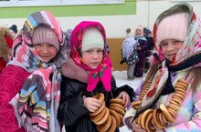 На текущей неделе белизну сугробов разбавили яркие краски павлово-посадских платков, костюмов коробейников, ароматных блинов и румяных детских щечек!