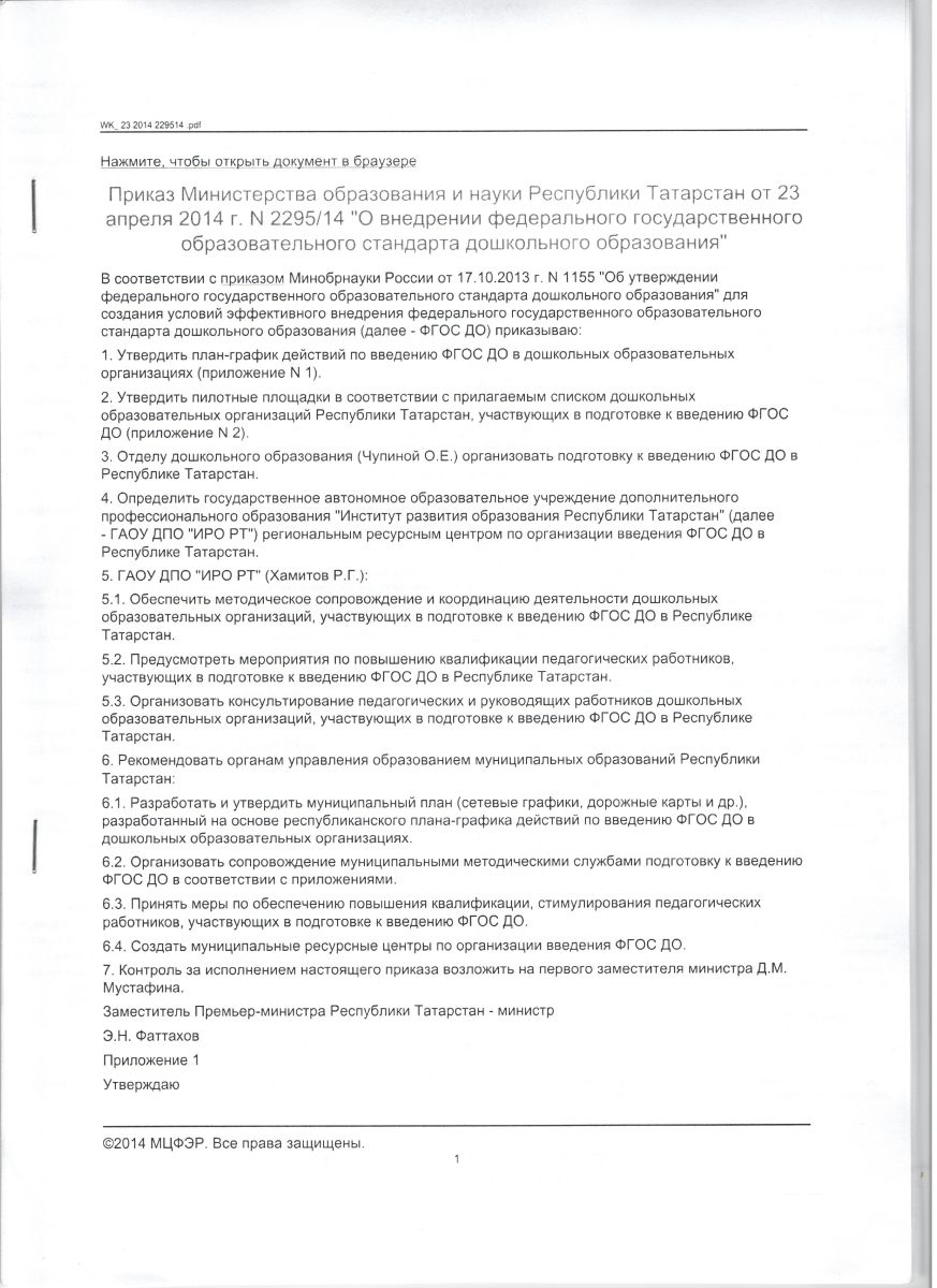 Приказ МОиН РФ от 17.12.13 №1155 "Об утверждении ФГОС ДО"