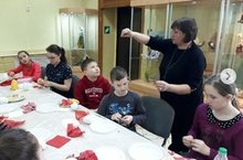Учащиеся занимаются созданием декораций для музыкальной сказки "Красный волк"