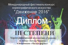Победа в конкурсе–фестивале хореографического искусства «ДВИЖЕНИЕ – 2016» 24.02.2016