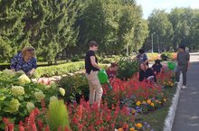 Клумбы Дворца радуют глаз жителей города.