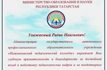 На мероприятии ведомственными наградами РФ и РТ были награждены лучшие педагоги школ, детских садов, учреждений дополнительного образования, СПО. Среди них - методист Дворца творчества детей имолодёжи Галлямова Римма Васильевна, ей вручили нагрудный знак "За заслуги в образовании". Директор ДТДиМ Салихзянов Радик Наильевич со своей супругой Лилией Григорьевной приняли участие в мероприятии как педагогическая династия.