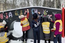 В Всемирный день памяти жерт ДТП, юные испекторы движения из школы № 3, написали призывы и пожелания: соблюдать правила дорожного движения как водителям. так и пешеходам. на арт-стене в парке Лемаева.