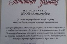 Коллектив Детского автогородка был награжден Почетной грамотой