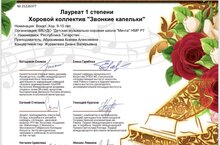 От души поздравляем хоровой коллектив "Звонкие капельки". Они стали Лауреатами I степени В Международном конкурсе классического искусства "Браво, Маэстро!", преподаватель Абросимова Ксения Алексеевна, концермейстер Журавлева Диана Валерьевна.