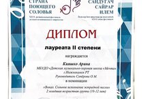 От души поздравляем Кияшко Арину и нашего преподавателя Саперову О.М., Арина стала Лауреатом II степени в XXVI региональном фестивале детского и юношеского творчества «Страна поющего соловья».Гордимся. Спасибо родителям за поддержку и участие!