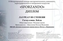 От души поздравляем Гатауллину Лейлу и ее преподавателя по фортепиано Абросимову Наталья Яковлевну с победой во II Международном конкурсе инструментального, вокального, хореографического и театрального искусства « SFORZANDO». Лейла стала Лауреатом III степени. Очень гордимся и поздравляем!