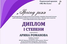Завершился I Международный конкурс эстрадно-джазовой музыки среди обучающихся ДМШ, ДШИ и иных образовательных учреждений Мы от души поздравляем и гордимся успехами нашей воспитанницы Романовой Арины,преподаватель по фортепиано Ахмедова Гульсина Миннехановна,она получила Диплом I степени.