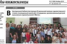 В Центральной библиотеке прошел III школьный конкурс художественного чтения, посвященный памяти Д.Е. Огородного, организованный детской музыкально-хоровой школой "Мечта",под таким названием напечатана статья в газете "Мы- нижнекамцы",№11, ноябрь 2019г.