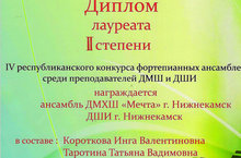 II место в IV Республиканском конкурсе фортепианных ансамблей среди преподавателей ДМШ и ДШИ 15.05.2015