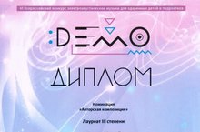 Учащийся Детской школы искусств Колчин Матвей (преподаватель Кунгуров А.В.) стал лауреатом 3 степени Всероссийского конкурса электроакустической музыки для одаренных детей и подростков "DEMO-2021". Учредителем этого конкурса является комитет по образованию правительста Санкт-Петербурга. Для того, чтобы получить право участия в конкурсе Матвею пришлось пройти строгий отбор. В конкурсе могли принять участие лишь те ребята, которые уже имели награды рейтинговых региональных и всероссийских конкурсов. Поздравляем Матвея и его преподавателя Анатолия Владимировича с заслуженной победой и желаем им новых творческих успехов и достижений!