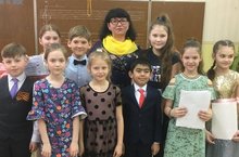 Учащаяся структурного подразделения Детскоой школы искусств на базе гимназии 25 Маяйчева Полина (преподаватель Мангутова А.Ф.) Приняла участие в акции "Фронтовая бригада", и прочитала стихотворение Матусовского Михаила "На безымянной высоте".