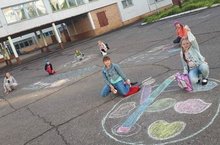 Преподаватель отделения Изобразительное искусство Ахметова Эльвира Габдулахатовна провела сегодня занятие на открытом воздухе. Ребята, учащиеся второго класса, не только полюбовались на сотканный из осенних лучиков сентябрьский день, но и с удовольствием изобразили на асфальте цветы, яркое солнышко и улыбки, поиграли в подвижные игры и попрыгали на скакалке. И преподаватель и юные художники получили массу положительных эмоций от веселого "осеннего" урока.