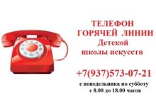 Телефон горячей линии Детской школы искусств +79375730721 с понедельника по субботу (8.00-18.00)