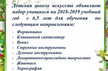 Детская школа искусств объявляет набор учащихся на 2018-2019 учебный год с 6,5 лет для обучения по следующим направлениям: