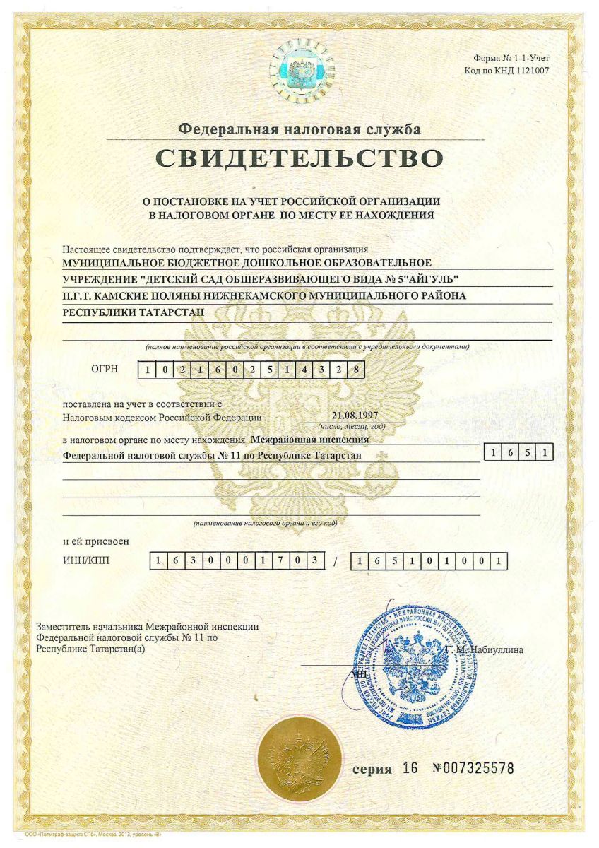 | Короткое название: | МБДОУ «Детский сад общеразвивающего вида №5 «Айгуль» п.г.т. Камские Поляны НМР РТ |