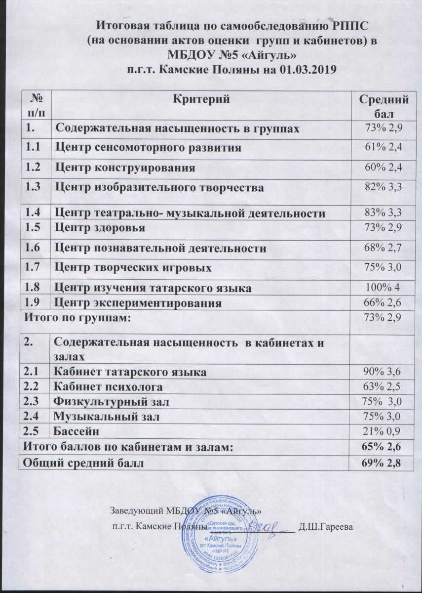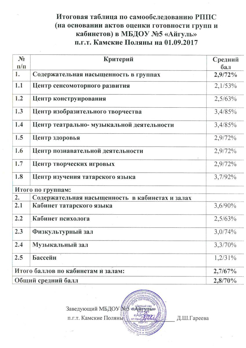 - Итоговая таблица по самообследованию на 01.03.2020год