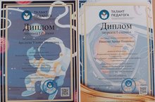 Воспитанницы подготовительной группы √ 11 приняли участие во Всероссийских конкурсах, посвящённые Дню Космонавтики. Бреднева Ульяна получила Диплом 1 степени в конкурсе: "Я рисую космос, звёзды и полëт" в номинации: "Художественное творчество". Иванова Арина Диплом 1 степени в конкурсе " Путь в Космос" в номинации: "Декоративно-прикладное творчество". Педагог: Киселева А. А.