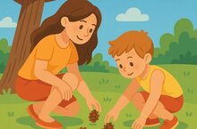 Игра «Найди и покажись» развивает внимательность и знание окружающей среды. Ребята ищут определённые предметы (шишки, цветы и т.д.) и описывают их. Игра подойдёт для детей разных возрастов и поможет развить наблюдательность, память и речь;